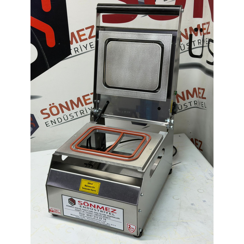 Sönmez Vakum 2 Bölmeli Paslanmaz Manuel Kase Tabak Kapatma Makinesi
